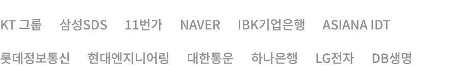 수료생은 KT 그룹, 협력사 뿐만 아니라 국내 대기업/중견기업에 취업하고 있습니다.